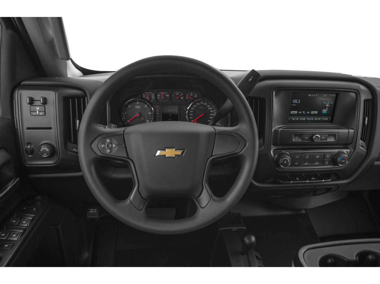Comfort and convenience are at the forefront with the heated and ventilated leather-appointed front bucket seats, power-adjustable pedals, and dual-zone automatic climate control. The chrome exterior accents and 20 polished aluminum wheels give this Silverado a bold, commanding presence, while the trailering wiring provisions make it the ideal companion for your towing needs.