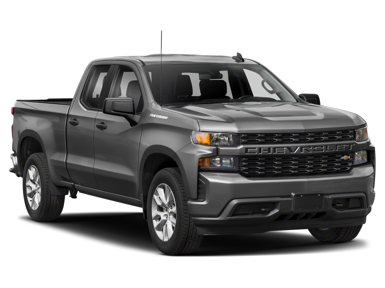 Silverado 1500 Custom, 4D Extended Cab, 2.7L Turbo, 8-Speed Automatic, 4WD, Silver Ice Metallic, Jet Black Cloth.